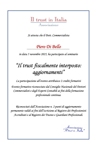 Attestato di Socio dell’Associazione “Il Trust in Italia”